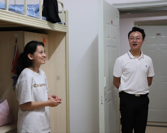 学院领导和全体新生辅导员在走访过程中,亲切地询问了新生们的情况,对来校报到的过程是否顺利、校园环境和寝室条件是否满意等问题进行了解。新生们纷纷表示,报到过程中各环节十分顺畅,并且感受到了学院的温暖和学长学姐们的热情,对即将开启的大学生活充满了期待。学院领导老师们还提供了有关学习计划、校园生活、人际交往等方面的建议,引导同学们积极面对学习和生活中的挑战。新生辅导员也叮咛宿舍成员要友爱互助,重视安全、卫生,树立优良寝风,要尽快投入大学生的角色,尽快适应大学生活。