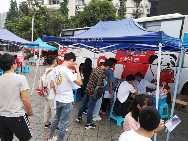 活动现场,志愿者们向前来参与活动的同学详细讲解了献血的注意事项,细心地询问了献血者的身体状况与近期用药情况、作息情况、视力状况并指导同学们填写信息表。对于符合献血条件的同学,成都市血液中心的医生在为其检测并记录血型、血压、脉搏等指标后,安排同学们参与献血。献血结束后,参与献血的同学获得了无偿献血证和1份爱心纪念礼品。