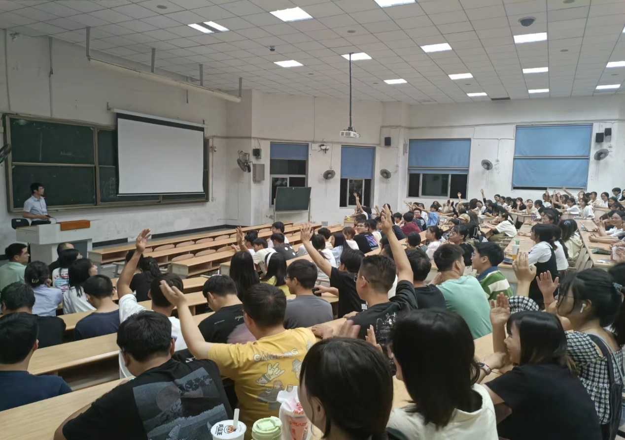 接着,陈明军结合自身事例谈到:一是要有资源整合的能力,做就做到最好;二是学会反思的能力,同时对未来充满期望。重点强调了“热爱、感恩、对自己狠下心”的重要性,鼓励同学们树立明确的目标,勇敢追求梦想,对自己所学保持热爱,并付诸实践。