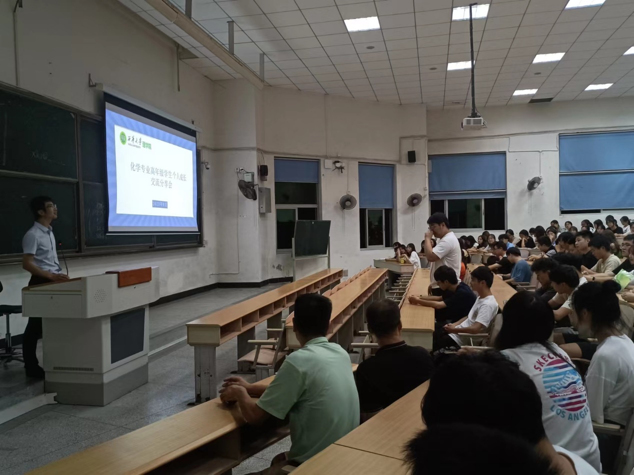 近日,理学院在4A-404召开化学专业高年级学生个人成长交流分享会,本次会议由院党委副书记兼纪委书记周川主持,院长王周玉、化学专业教授陈明军、2020级化学专业本科生辅导员、2021级本科生辅导员以及2020级和2021级全体化学专业本科生参加。