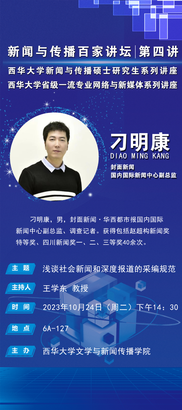 主讲人简介:刁明康,封面新闻·华西都市报国内国际新闻中心副总监、调查记者,2007年9月进入四川日报报业集团工作。参加过汶川地震、玉树地震、雅安芦山地震、绵阳清平特大泥石流、缅北战争、深圳大滑坡、江苏响水大爆炸等百余次重大突发事件报道及改革开放40周年、新中国成立70周年、全国脱贫攻坚等历次主题报道。