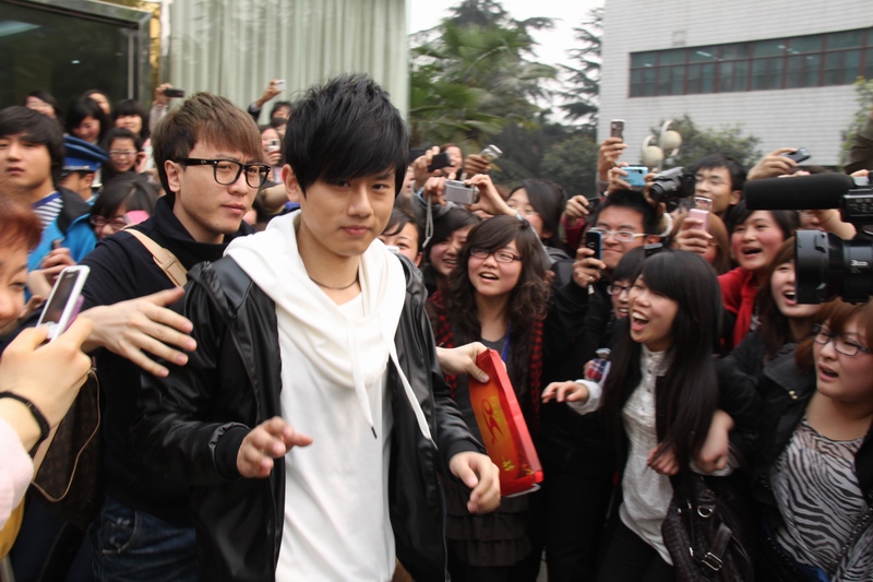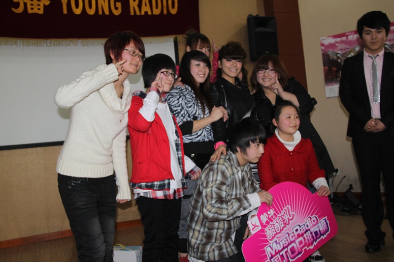 3月13日下午,“2009年度蒙牛酸酸乳MusicRadio中国TOP排行榜音乐梦想系列活动”之首场校园拉票会在我校举行。“实力派唱将”张杰、“2009超女冠军”江映蓉来到我校,与我校广播台成员进行现场互动。