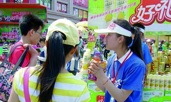 试想有一天晚上,你正躺在床上惬意地翻着身,突然,一阵温柔的敲门声把你从满足中拉回现实,当你不情愿地去打开门,却发现是几个可爱的同学来推销东西的。当你正想发发气,却看到他们那歉意的眼神,只能把不满吞回肚子啦!然后你面对的是他们温柔礼貌而又善意的语言,最后你不知不觉中拿出钱买下了他们的东西,当他们离去时,你才明白,你已经被推销啦。