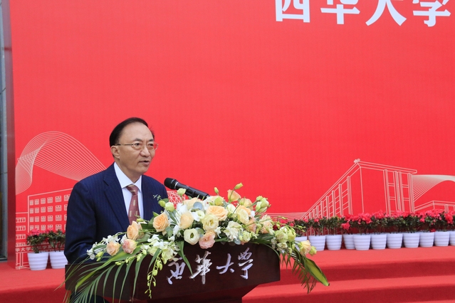 校党委书记刘树根致辞,对四川省教育厅关心支持学校建设发展表示衷心的感谢,对香港智华基金积极支持教育事业发展的善举致以由衷的敬意。他表示,今天举行揭牌仪式的“智华楼”,设计初衷是为了传承城市与学校的历史文脉,持续践行创新驱动发展、科教兴国和人才强国战略,正与智华基金的宗旨相契合。学校将充分使用好捐赠资金,精准投入、确保成效,全面提高人才培养质量、科学研究水平和服务社会能力,积极拓展国际交流合作,大力推进文化传承创新,努力把学校建设成为特色鲜明、国内知名的高水平综合性大学。