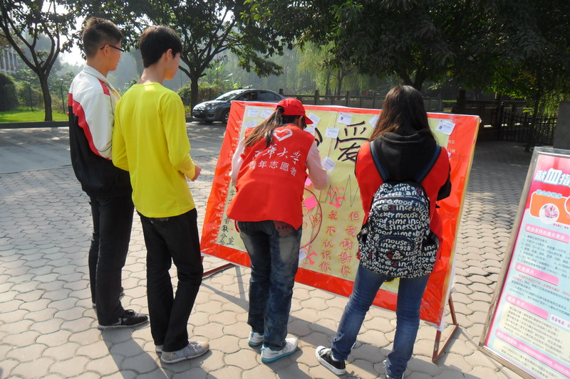 10月31日,成都市血液中心采血车走进西华校园。连续两天,在西华大学的采血量总计接近1000袋,每天的采血时间从上午要一直持续到快天黑,西华学子的志愿精神让一向淡定的采血工作人员都大呼“压力很大”!