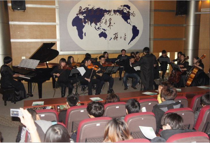 12月16日晚7:00,我校管弦乐团2012新年音乐会在四教报告厅举行。艺术学院副院长屈立丰,音乐系师生及学校其他师生300余人出席了音乐会。 晚会在《巴赫第五组曲序曲》拉开帷幕,接着演奏了莫扎特《第二十一钢琴协奏曲》,贝多芬《第四钢琴协奏曲》,电影《辛德勒名单》主题曲,电影《燃情岁月》主题曲,《卡农.帕赫贝尔》等西方经典曲目。精彩的演出让到场的观众享受了一次艺术盛宴。 西华大学管弦乐团成立于2009年9月,是以西华大学青年教师和在校大学生器乐精英为基础组建的一支西洋管旋乐团,由艺术学院老师直接担任音乐指导和乐团指挥。 乐团保持着严格的课程训练和艺术实践,定期训练乐团合奏,排练经典曲目,并在校参加演出。管弦乐团建立以来,排练了大量经典作品。如莫扎特《“朱庇特”交响曲》、巴赫《d小调双小提琴协奏曲》、贝多芬《第四交响曲》和大量经典室内乐作品。成功举办过“2011新年音乐会”和“2011室内乐音乐会”。 “高雅艺术进校园”为乐团的发展提供了广阔的空间,乐团成员深受鼓舞,并将以高雅艺术为己任,刻苦训练,磨砺精品,努力打造一支有特色的管弦乐团,为提高大学生艺术修养做出积极的贡献。 责 编:王蜀苏 |