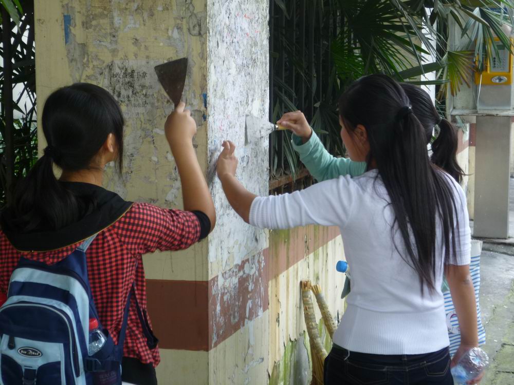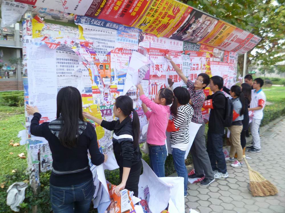 为让西华校园更加整洁美丽,10月16日中午12:00点,我校勤工助学的170多名同学主动参与了 “清理校园牛皮癣,美化校园环境”活动。 同学们分成八个小组,分别负责清除新老教学楼、四大食堂、学生住宿区域、学校各处张贴栏、电话亭及教职工宿舍周围的“牛皮癣”。活动过程中,大家分工明确,勤工助学各岗位的党员干部发挥带头作用,率先垂范,各位同学积极参与,不怕苦不怕累。有的同学徒手撕下粘贴得异常牢固的小广告;有的同学用湿抹布把顽固的地方打湿便于清理;有的同学用铁锹铲下粘贴广告时的胶水、胶布;有的同学收集撕下来的垃圾,每位同学都干得热火朝天,忙得不亦乐乎。 在清除过程中,同学们遇到了很多困难:有些张贴栏上贴了很多广告,同学们撕了一层又一层,用铁铲铲了很长时间,有的同学手上起了泡;有些张贴栏广告贴的位置比较高,紧紧靠自身身高不能完全清除,但同学们没有因此而放弃,而是快速想办法,就近借凳子和梯子,想法设法把自己负责的区域打扫得干干净净。 虽然现在时节已经进入深秋,但当天却是艳阳高照,气温骤升,俨然有秋老虎的阵势,很多同学经过一段时间劳动,早已全身酸痛,衣衫湿透,脸上也汗珠涟涟,却没有一位同学皱眉,也没有一位同学抱怨参加活动耽误了自己的周末休息时间。大家都怀着为师生服务的心态积极地向校园的“牛皮癣”宣战!“西华是我们共同的家园,也是我们几万学子共同生活的地方,我们有责任也有义务让我们的家园变得更美丽,让我们的校园变得更整洁。虽然很热很累,但是能为校园做一些有意义的事情,贡献一份力,我觉得很开心。”一位正在清扫垃圾的同学说到,在强光照射下,他的额上已经沁出许多汗珠,但他脸上却挂满了微笑。 经过勤工助学同学近七个小时的清理工作,校园内的小广告基本上被清理干净。路过的老师及同学看到美化后的校园,都不由自主地夸赞同学们吃苦耐劳,踏实肯干。 清理“牛皮癣”(1) 清理“牛皮癣”(2) 清理“牛皮癣”(3) 责 编:翟元平 |