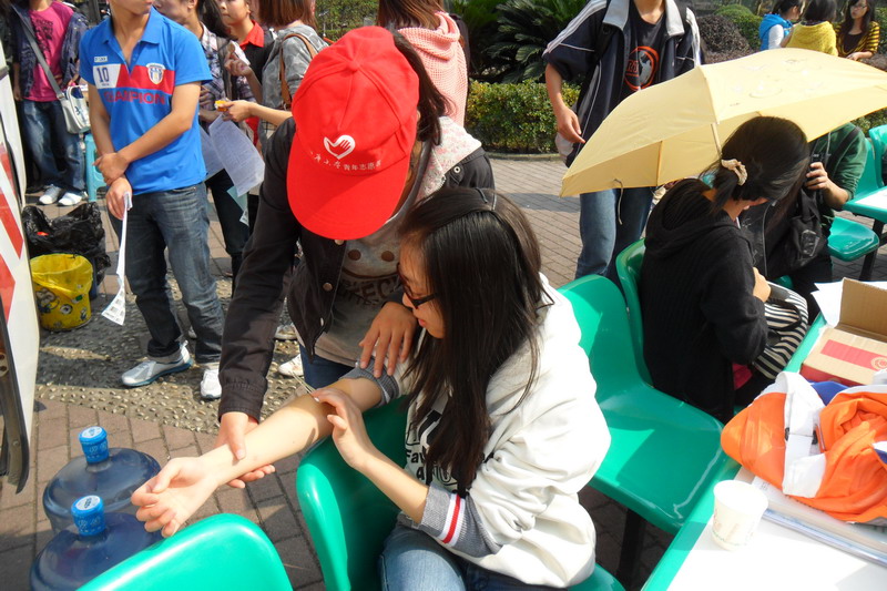 10月31日,由我校志愿者联合会和成都市血液中心联合组织的无偿献血活动走进了西华校园。共设临江苑和德馨苑两个献血点,活动为期两天,献血时间从早上8:00持续到下午6:00。 献血车一进校园就受到了学生的关注,同学们积极地加入到了无偿献血的队伍当中。此次献血活动,献血者需通过咨询登记、体检、化验等程序后方可献血。一位来自2012级外国语学院的志愿者涂智强同学也参与到了此次无偿献血的活动当中,当问他为什么想要献血时,他笑着说:“自己作为一名志愿者,要做好榜样,同时希望自己的血能拯救更多的生命。”2010级管理学院的张凯同学说:“这是我第二次献血了,献血既对身体有好处,最重要的是能尽一份社会责任,帮助需要帮助的人。”一位血液中心的老师说:“同学们的热情和积极让我们很感动。” 除了来献血的同学外,在现场,志愿者联合会成员耐心地为前来咨询的同学服务,细心地为献完血的同学送上一杯杯热水。此次为采血活动进行安排的志愿者联合会负责人刘佳丽在现场也十分忙碌,她鼓励同学们参与进来,积极奉献自己的爱心,增强社会责任感。“希望还有第二次。”,“第一次献血,好紧张,好激动,但是我不怕。”在献血展板上写着许多同学们献血后的真实感受。 据统计,第一日就有368名同学参与了献血,约采集110400ml血液。 献血前的征询、体检 同学们正在献血 志愿者联合会成员热心服务 我献血,我快乐 责 编:舒婷 编 审:王蜀苏 |