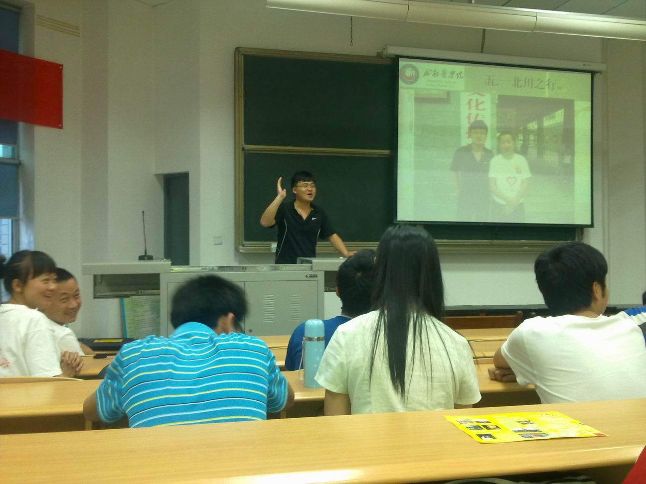 5月5日晚上7:00,由建筑与土木工程学院、能源与环境学院志愿者联合会主办的、以“大爱洒北川,羌魂在行动”为主题的公益讲座在我校4A-406成功开展。此次讲座邀请了草根-中国心志愿者团队的高队和志愿者陈伟琼以及成都医学院志愿者代表武笑楚为主讲人。 在讲座中,武笑楚同学展示了成都医学院志愿者帮助北川贫困儿童的过程以及成果。草根-中国心的志愿者陈伟琼介绍了中国心志愿者团队在帮助北川灾区儿童的方式并展示了帮助儿童们的图片。草根-中国心的高队也交流了自己在做志愿者过程中的一些趣事以及心得。 此次讲座不仅让我校部分同学对志愿者工作产生了更加浓厚的兴趣,同时也传播了志愿者团队的志愿精神,对以后我校志愿者活动的成功举行奠定了基础。 讲座现场