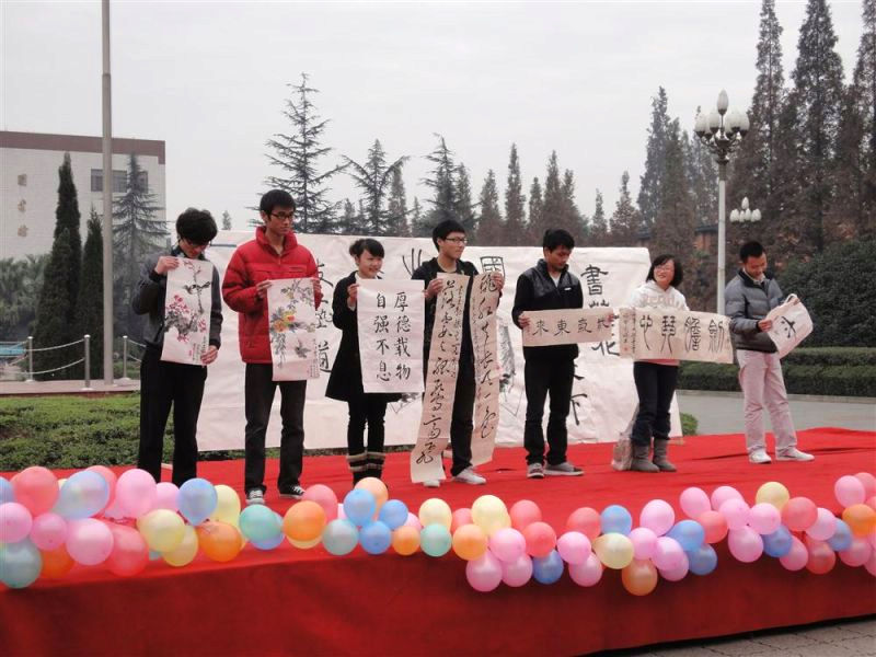 11月28日下午2:00,我校首届“国粹之英”国粹文艺展示活动在明德广场举行。本次活动由社管会主办,兰亭文学社、东方武术协会、日语协会、书画协会、茶文化协会共同承办。本次活动还邀请到电子科大、西南交大、银杏酒店管理学院、托普学院等高校嘉宾前来参加。 活动上,各个社团都将自己精心准备的节目呈现给现场观众。书画协会的现场书法绘画表演,东方武术协会的武术表演,茶文化协会的现场茶艺表演,日语协会的插花表演,兰亭文学社的话剧表演等精彩节目都赢得了全场观众的热烈掌声。活动还与现场观众积极互动,围绕我国的国粹文化向现场观众提问,激发了大家参与的兴趣。茶文化协会会长吴斌表示,希望通过这次‘国粹之英’活动告诉同学们,国粹其实离大家并不遥远。 本次国粹文化展示活动持续至下午5:00圆满结束。通过本次活动,让同学们近距离接触了我国优美的国粹文化,也让同学们对国粹文化有更深一层的理解,有利于国粹艺术在大学生中的推广。
