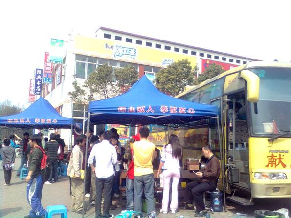 来自成都市血液中心的三辆采血车分别在我校二食堂外和三食堂外采集血液。活动现场,同学们表现积极,自觉排队,踊跃参加献血,为他人奉献自己的一片爱心。献血活动有序地进行着。