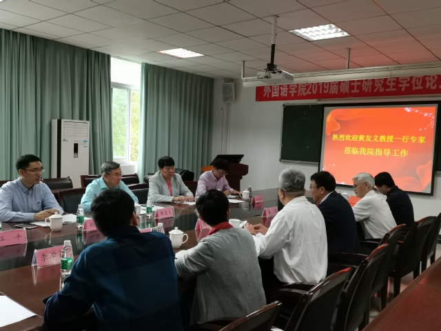 18日上午,黄教授一行在外国语学院会议室进行了学科建设座谈会,就学院学科点的相关情况听取了汇报,并就MTI教育的发展动态和趋势进行了说明,谢旭升教授、杨建平主任、赵维真助理分别就学院学科发展所存在的问题和建设思路、CATTI考试的相关情况进行了说明和指导。