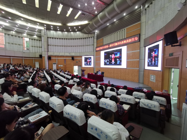 黄友义教授在四教报告厅作了题为“新时代翻译的新挑战新作为”的学术讲座,从语言水平、知识积累和受众意识三个方面,以大量详实的例证说明了当今翻译的特点、变化和趋势,指出随着时代发展及中国国际地位的提升,新时代的翻译不再是单纯的学术活动,而是逐渐成为建立中国话语体系的重要媒介,尤其在“一带一路”的时代背景下,翻译的重要性更是不言而喻。他指出,为了能满足新时代翻译的要求,翻译专业的学生一定要努力学习打好基础,做到解决语言问题,注重知识积累,提高对外传播意识。