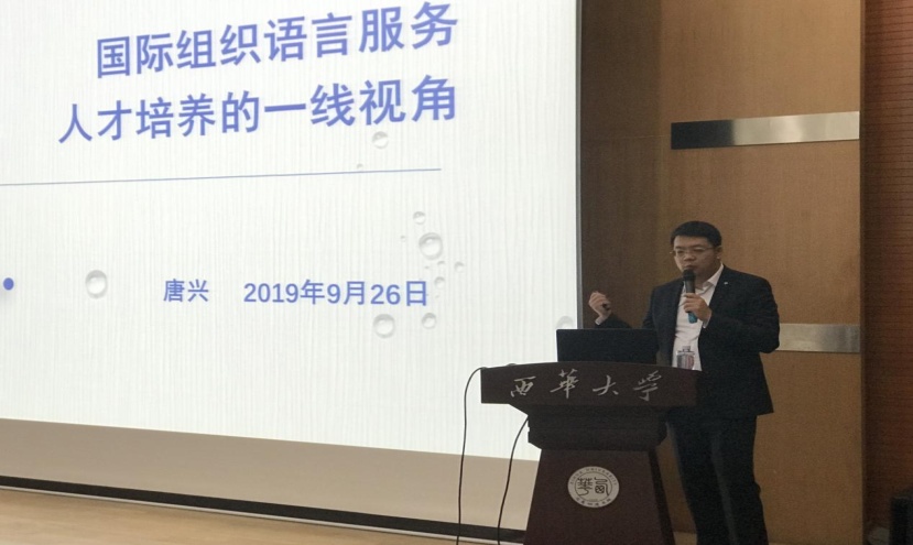 9月26日下午,策马翻译集团创始人、董事长、总裁、西华大学硕士研究生校外导师唐兴先生受邀在图书馆第二学术报告厅作了主题为“国际组织语言服务人才培养的一线视角”的学术讲座。