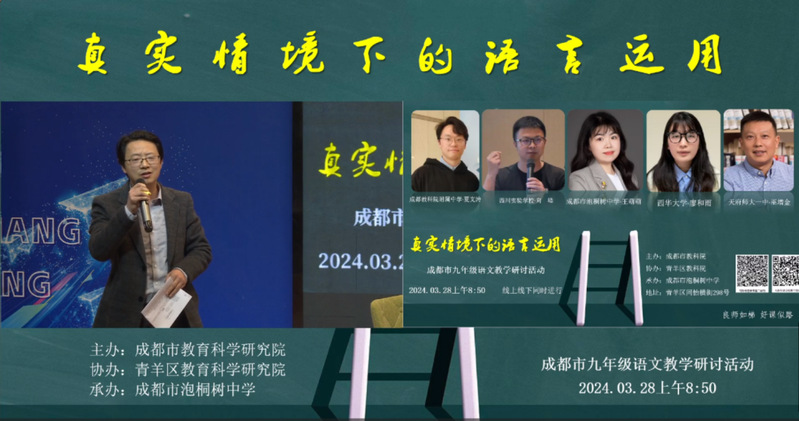 春暖花开日,教研意正浓。为提升学科语文专业研究生的教研技能,促进学生专业化成长,助力学院教育教学高质量发展,3月28日上午,文学与新闻传播学院副院长王学东、钟良鸣老师应主办方邀请,带领学科语文专业的研究生团队赴青羊区泡桐树中学参加成都市九年级语文教研活动。