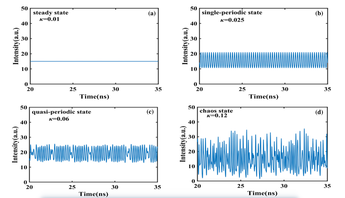 随着半导体激光在材料加工、激光雷达和光学成像等领域的不断发展,对半导体激光器的输出功率和光束质量提出了很高的要求。然而,由于热效应和非线性效应,半导体激光器的光束质量通常会随着功率的增加而恶化。如何获得兼具高功率和高光束质量的半导体激光源成为国际上亟待解决的问题。谱合束技术由于不需要精确控制相位和偏振而得到广泛的研究,该技术采用外腔反馈结构锁定子束光谱实现能量叠加。然而,外部光反馈以及串扰效应有可能引起这些激光器的混沌行为。混沌效应可能导致激光器相干坍缩、光谱展宽和效率降低等问题,并且混沌激光的输出表现出高度不规则和不可预测的特性,极大地限制了半导体激光源的应用。该论文采用四阶龙格库塔法求解半导体速率方程,并引入一个稳定性条件评价光反馈半导体激光器的潜在特性。稳定性条件可以计算和预估光束的输出状态。基于稳定性条件,分析了外腔参数对反馈因子的影响。该工作为实现高亮度半导体激光稳定光源的应用奠定了基础。