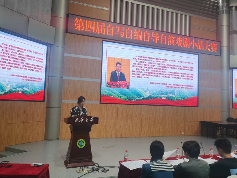 在精彩纷呈的表演以及紧张刺激的评比之后,中文系主任王燕飞对本次大赛进行了精彩点评。他高度赞扬了学生们在剧本创作和表演方面的出色表现,认为这些作品不仅体现了学生们的艺术追求和创新精神,更展示了西华学子对社会现实的深刻洞察和人文关怀。