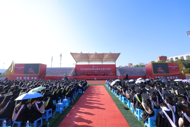 庄严而激昂的国歌声响起,2024届毕业生身着学位服,怀着对未来的憧憬与期待,共同迎来求学生涯中的难忘时刻。