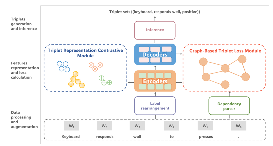 论文2:Dual-enhanced Generative Model with Graph Attention Network and Contrastive Learning for Aspect Sentiment Triplet Extraction,由唐明伟教授担任通讯作者,第一作者为2022级研究生徐皓文,已被国际顶级学术期刊《Knowledge-Based Systems》接受并在线发表。