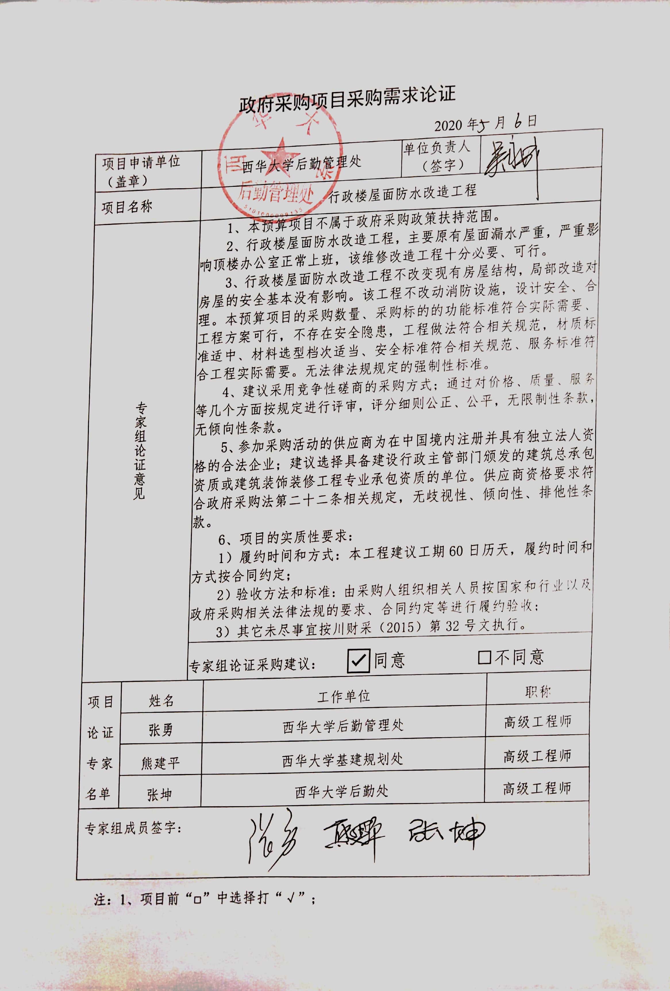 行政楼屋面防水改造工程拟采用竞争性磋商方式采购,并组织专家进行了采购需求论证。现将此事项向潜在的政府采购供应商和社会公众广泛征求意见,有关情况公示如下: