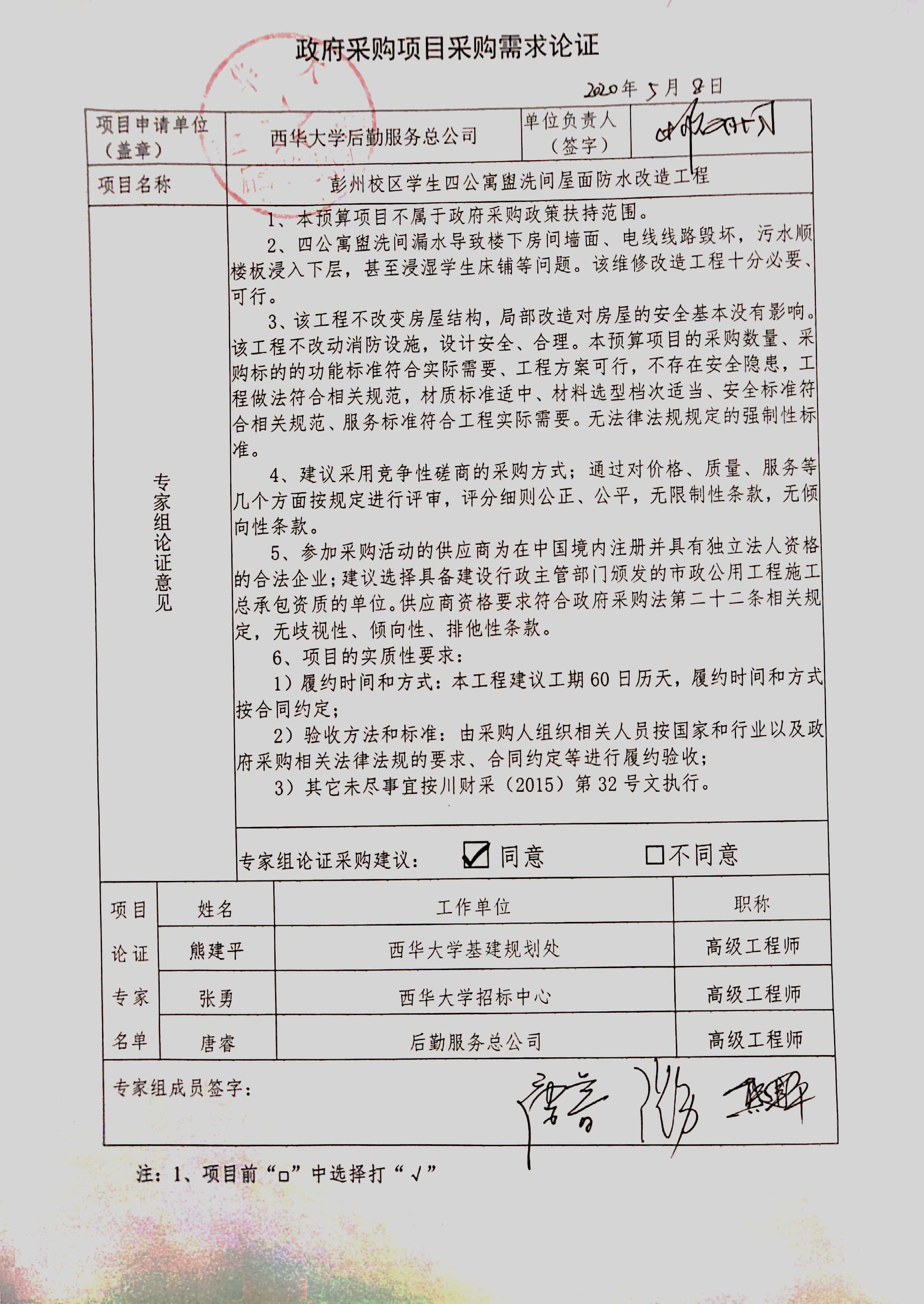 彭州校区学生四公寓盥洗间屋面防水改造工程拟采用竞争性磋商方式采购,并组织专家进行了采购需求论证。现将此事项向潜在的政府采购供应商和社会公众广泛征求意见,有关情况公示如下: