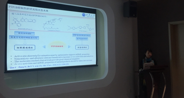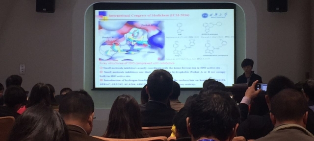 我校王周玉教授带领的“新型小分子靶向药物研发团队”应邀参加会议并作出学术报告。王周玉教授作了题为“Design, synthesis and biological evaluation of novel IDO inhibitors(新型IDO小分子抑制剂的设计、合成及生物活性测试)”的学术报告,钱珊副教授作了题为“Design, synthesis and biological evaluation of PTP1B inhibitors(基于靶标PTP1B的新型抑制剂的设计、合成及活性研究)”的学术报告,杨羚羚博士作了题为“Design, synthesis and biological evaluation of novel Sirt2 and Sirt5 small molecule inhibitors(新型Sirt2及Sirt5小分子抑制剂的设计、合成及生物活性测试)”的学术报告。报告内容引起了国内外同行的广泛关注和认可,其中IDO抑制剂的研究还引起了国内外部分制药企业的关注。