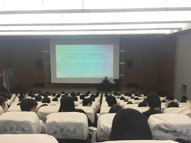 11月17日14:00,土木建筑与环境学院在图书馆报告厅举办了主题为“加快创新成都生态文明建设的举措”学术报告会,学院党委副书记兼副院长熊华、副院长王泽云、团委书记温超及三百余名学生参加了此次报告会。教授级高级工程师,现任成都市城市公共环境艺术协会会长成都市土木建筑学会顾问,原成都市建委主任刘玉成担任此次主讲。报告会由熊主持。