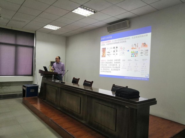 在6A-520,孟凡满老师作了题为“基于深度学习的图像分割方法及进展”的讲座。