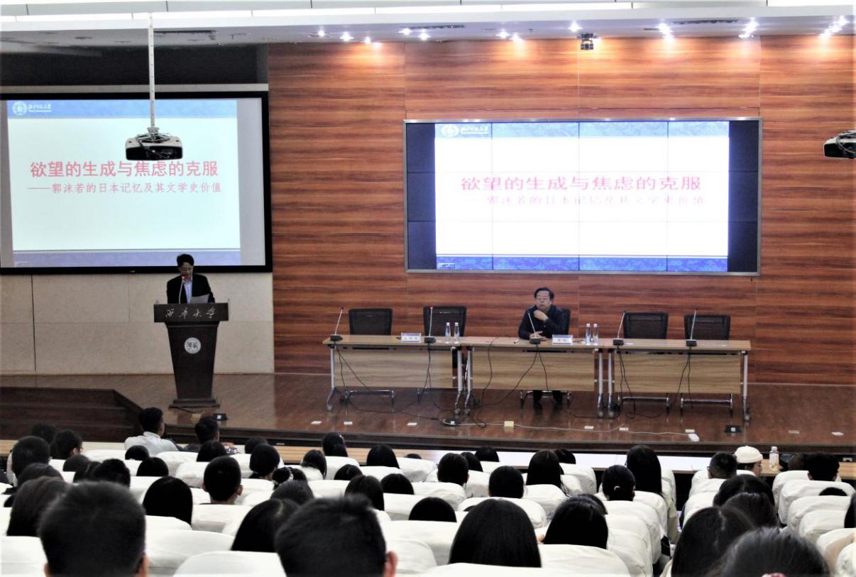 1012日下午,文学与新闻传播学院在图书馆报告1厅举办了西华大学60周年校庆系列讲座暨文学与新闻传播学院“问渠论坛”。长江学者、四川大学文学与新闻学院院长李怡教授“日本体验与‘新诗郭沫若’的诞生”为主题作了一场高水平的学术讲座。文学与新闻传播学院副院长王学东教授主持讲座,200余名师生聆听讲座