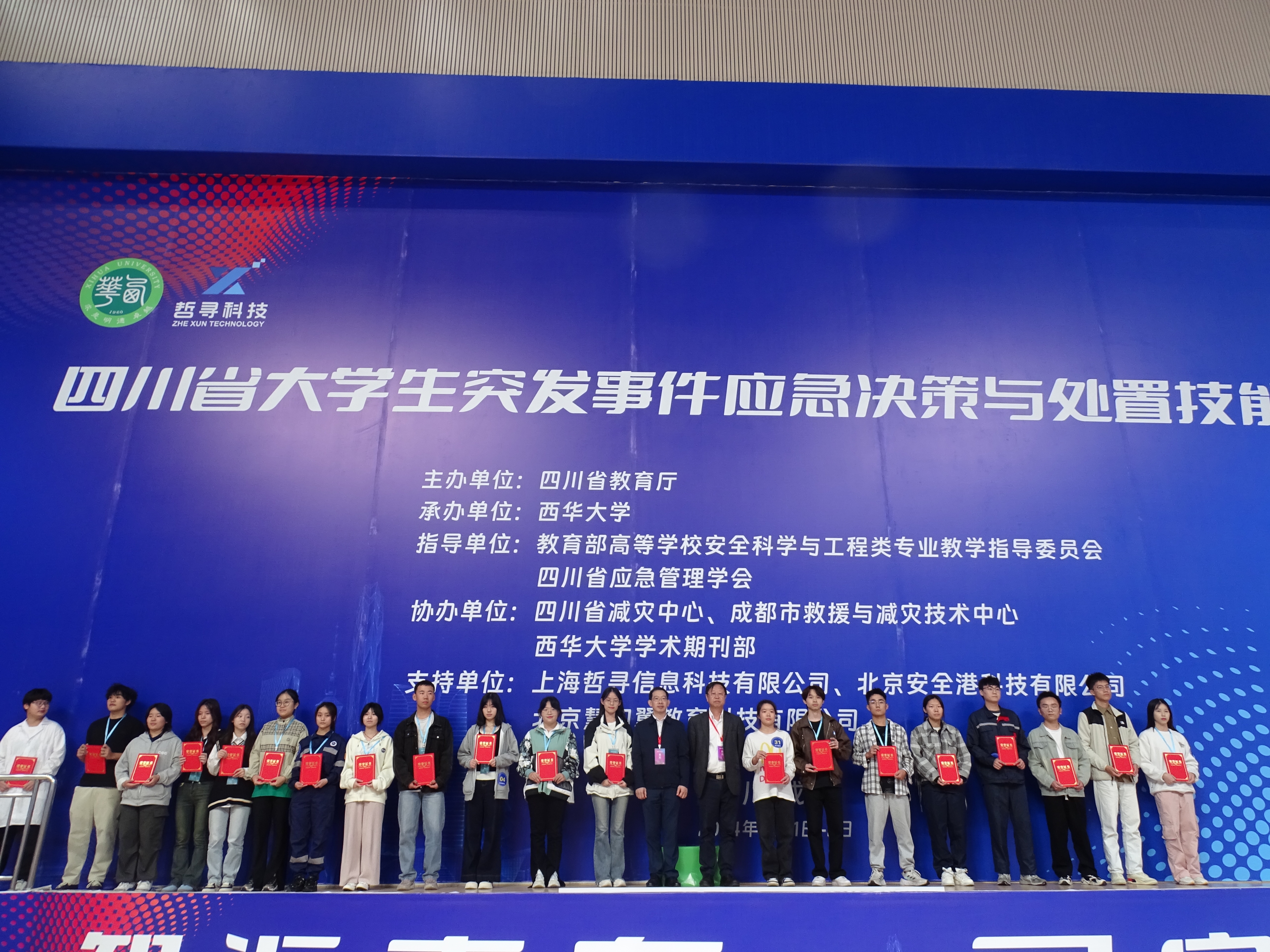 11月1日-2日,由四川省教育厅主办、西华大学承办,教育部高等学校安全科学与工程类专业教学指导委员会、四川省应急管理学会指导,四川省减灾中心和成都市救援与减灾技术中心协办,上海哲寻信息科技有限公司技术支持的四川省大学生突发事件应急决策与处置技能竞赛在我校成功举办。来自全国17个省市62所高校的154支队伍近900名师生参加初赛。经过激烈角逐,来自中国矿业大学、电子科技大学、西南交通大学、河南理工大学、暨南大学、防灾科技学院等42所高校的75支队伍、近500名师生进入决赛。