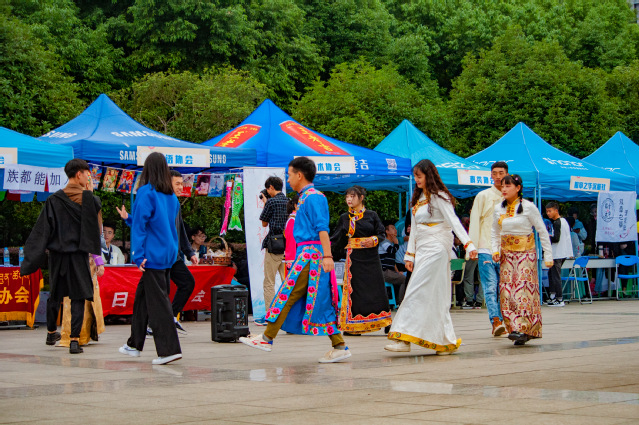 成都迎来了久违的晴天,或许是阳光也想来凑个热闹。四教前支起一排整齐的帐篷,摆点的同学们忙碌地做着准备工作,一年一度的“百团大战”在这里拉开序幕。