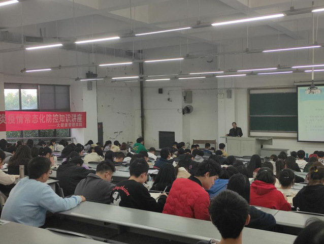 10月22日上午、10月29日上午,大健康管理学院在6B-307分别开展了两场新冠肺炎疫情常态化防控知识讲座,讲座由学院特聘院长李成军教授主讲。学院各年级全体学生参加了讲座。
