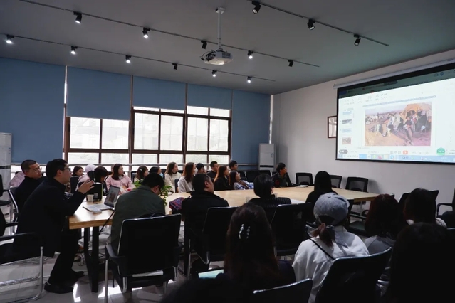 文鹏教授以新中国成立70年来的油画作品为例,为师生指引了道路,在场和线上的师生们都沉浸在其中,对油画创作也有了新的看法和思路。