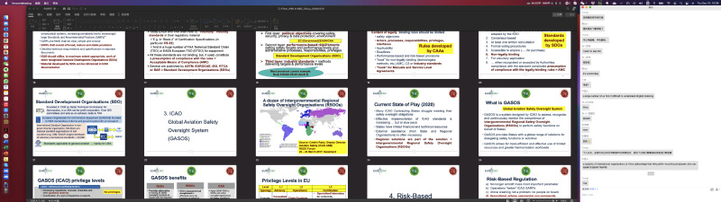 Filippo教授从Workload on CAAs、Performance-Based Regulation、ICAO Global Aviation Safety Oversight System (GASOS)、Risk-Based Regulation、drones in European Union (EU)五个方面作了报告。刘浩教授对同学们难以理解的知识点进行了补充翻译和解释,特别是在合格实体(QE)如何促进基于风险的监管、SDOs发布的PBR技术标准以及SDO在基于绩效监管中的作用等方面进行了补充说明。Filippo教授还跟同学们推荐了几个学习航空监管相关知识的网站,鼓励同学们主动加强学习,以后为航空监管贡献一份力量。