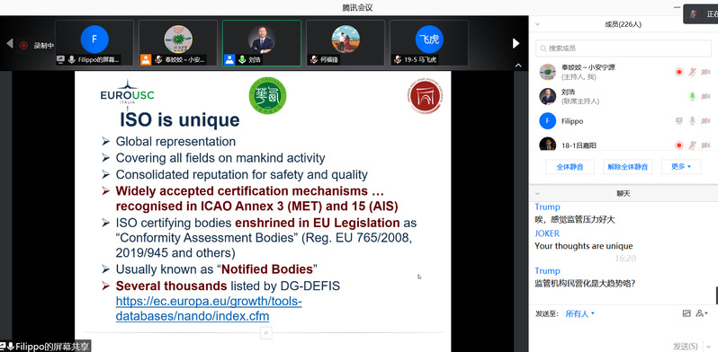 12月10日下午3:00,航空航天学院邀请学校客座教授、无人系统规则制定联合体(JARUS)专家Filippo Tomasello教授为同学们作“Performance-Based and Risk-Based Regulation on Aviation(基于性能和风险的航空监管)”云上主题报告。学院部分教师和全体学生参与了讲座,讲座由学院特聘教授刘浩主持。