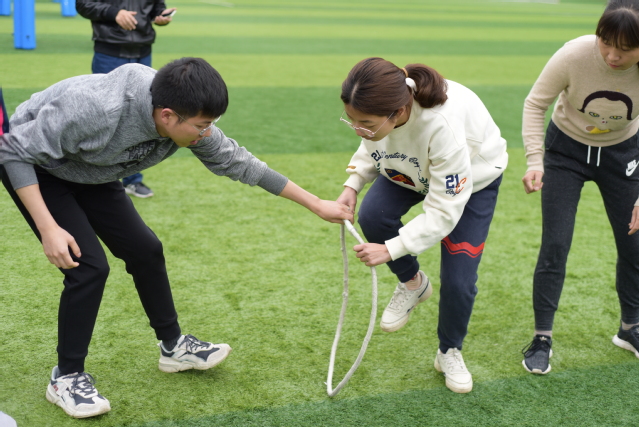 2.4月14日,2021年教职工趣味运动会在锦地苑田径场举行。运动会以集体项目为主,包括金龙钻圈、流水乒乓、超级飞镖、趣味投篮、陆地龙舟赛跑、鼓动人心、桌上保龄球7个项目。全校26个分工会的1792名教职工报名参赛。