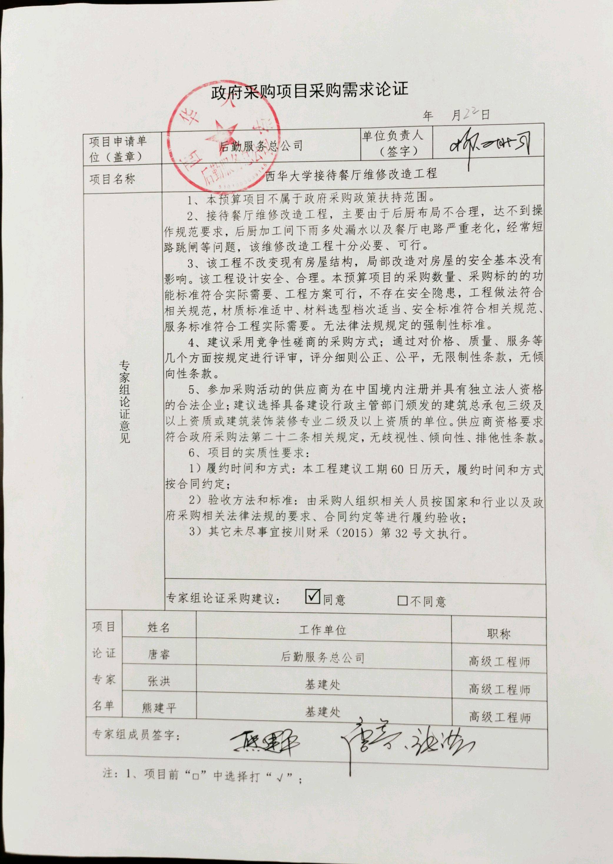 西华大学接待餐厅维修改造工程拟采用竞争性磋商方式采购,并组织专家进行了采购需求论证。现将此事项向潜在的政府采购供应商和社会公众广泛征求意见,有关情况公示如下:
