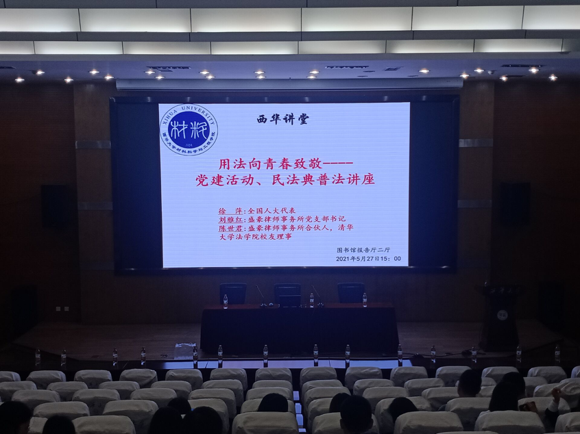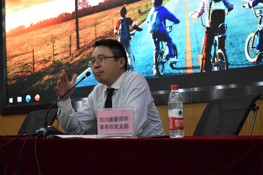 本次普法讲座的主讲人为盛豪律师事务所合伙人、清华大学四川校友会理事陈世君先生,他根据自己多年从事法律工作的经验,总结了日常生活中最容易出现纠纷的几个方面,例如:肖像权、人格权和劳动法等,并结合实际案例,讲述了大学生应该如何保障自身合法权益。
