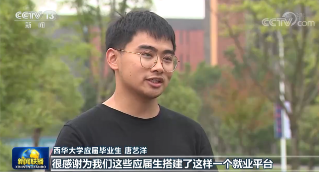 6月19日,《新闻联播》中《沿着总书记的足迹,新时代治蜀兴川再上新台阶》采访我校宜宾校区应届毕业生唐艺洋同学,他在采访中说“很感谢为我们这些应届生搭建了这样一个就业平台。下一步,我会按照总书记勉励我们青年学子所说的那样,要热爱劳动,脚踏实地,在实践中一步步成长起来,努力做一个德智体美劳全面发展的人。”新闻联播采访镜头习近平总书非常关心高校毕业生就业情况。在今年6月8日,习总书来到宜宾学院调研考察强调“党中央高度重视高校毕业生就业,采取了一系列政策措施。当前正是高校毕业生就业的关键阶段,要进一步挖掘岗位资源,做实做细就业指导服务,学校、企业和有关部门要抓好学生就业签约落实工作,尤其要把脱贫家庭、低保家庭、零就业家庭以及有残疾的、较长时间未就业的高校毕业生作为重点帮扶对象。”习近平总书记对同学们说“幸福生活是靠劳动创造的,大家要保持平实之心,客观看待个人条件和社会需求,从实际出发选择职业和工作岗位,热爱劳动,脚踏实地,在实践中一步步成长起来。”习近平总书记勉励同学们“自觉践行社会主义核心价值观,努力做到德智体美劳全面发展。”为落实习近平总书记指示精神,学校党委书记余孝其、校长刘树根带队对宜宾市重要企业