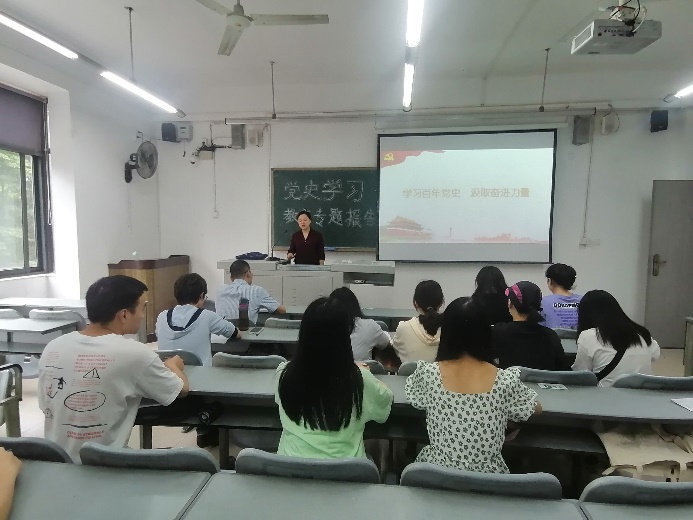 5.6月18日,为切实推进党史学习教育不断深入,丰富党史学习教育形式内容,学校党史学习教育宣讲团成员、马克思主义学院教师王海容受邀到大健康管理学院作题为《学习百年党史,汲取奋进力量》的专题报告。