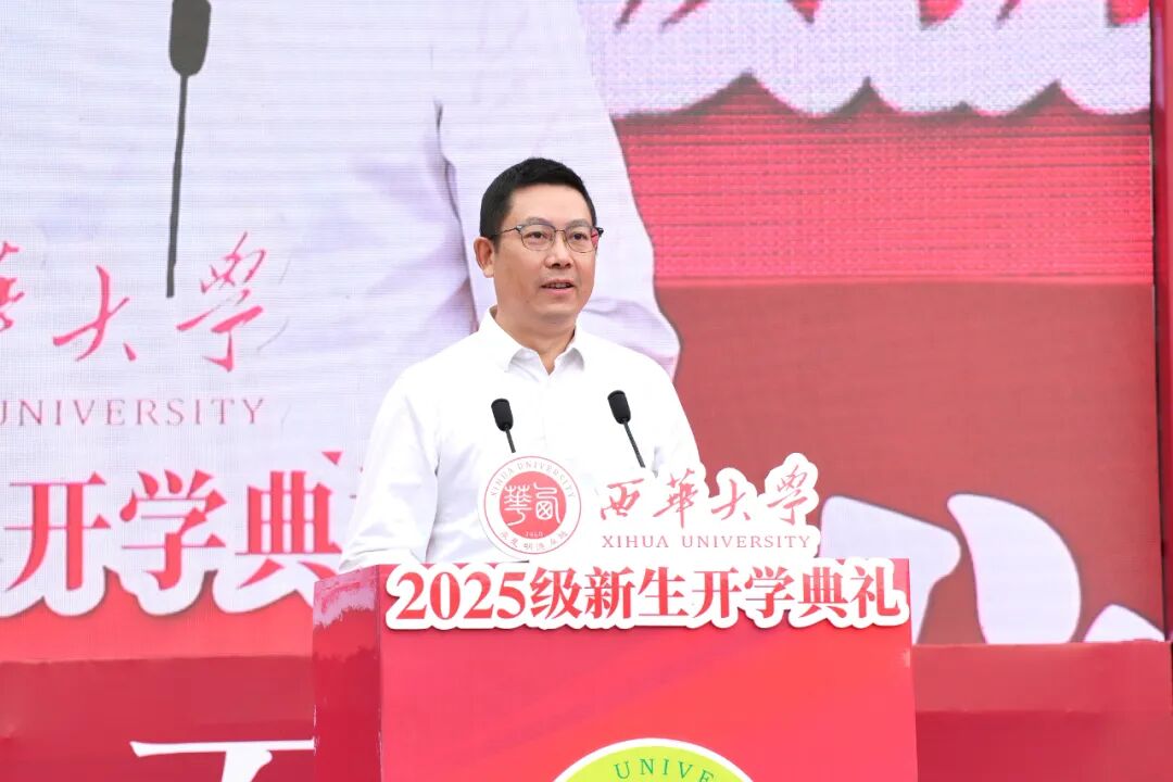 李秋实在致辞中代表学校和靳敏书记,向宜宾校区全体新生表示欢迎。他表示,8年前,西华大学成为首所与宜宾签约共建高校,在宜宾市委、市政府大力支持下,校区从无到有、持续发展,如今青山环绕、绿水相依,环境优美、设施完善,成为同学们理想的读书之地。未来,学校将与宜宾全面深化校地战略合作,创新推进产教融合、科教融汇,深化在新能源汽车、智能制造等领域的合作,拓展在“雅下工程”国家重大战略、低空农业装备、新能源装备、医工交叉等领域的合作,让同学们能在这些领域获得全新的产教融合、科教融汇培养体验。学校将与宜宾市委、市政府一同努力,将宜宾校区建设成同学们最满意、最宜居的校区。他强调,今天的开学第一课,恰逢九一八事变爆发94周年,希望同学们勿忘国耻、奋发图强。围绕“为中华之强大而发奋学习”,他向同学们提出三点期望:一是向内探寻,笃于立德修身;二是向真求是,勇于追求真理;三是向强锤炼,勤于野蛮体魄。他勉励全体新生在大学修身养德,成熟心智、发奋学习、不畏挑战,找到心中所爱,为人生增色添彩,做胸怀天下、勇于创新、意气风发的新一代“西华人”。