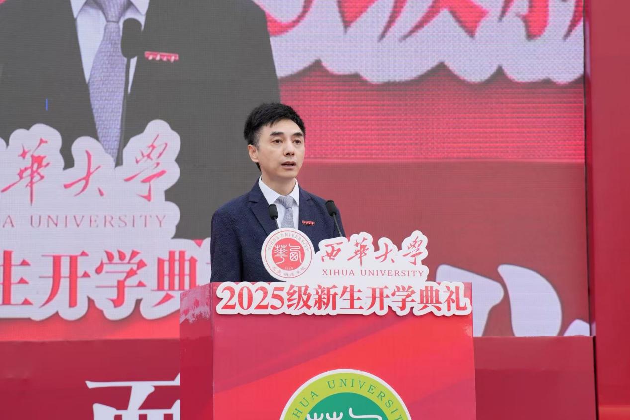 全国模范教师、材料科学与工程学院彭必友教授作为教师代表发言。他表示,希望同学们在大学实现从“被动接受”到“主动建构”的转变,充分利用校区资源开展探索性学习;从“学习知识”向“锤炼能力”转变,注重培养解决实际问题的专业能力;完成从“独善其身”到“兼济天下”的升华,将个人发展融入国家战略需求,用学业的进步和德行的养成来回报亲人,用优异的成绩和健康的成长让西华大学更加精彩。