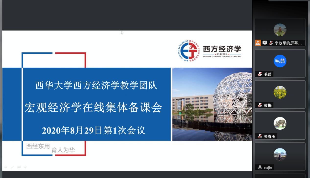 为深入推动教学改革,充分交流教学经验,努力提升教学效果,切实做好新学期教学准备工作,8月29日,我校西方经济学教学团队针对新学期即将开设的《宏观经济学》课程,举行了第一次集体备课会。本次备课会以线上的形式开展,由团队首席教授李政军主持会议,吸引了来自全国30余所高校近50位老师参加。