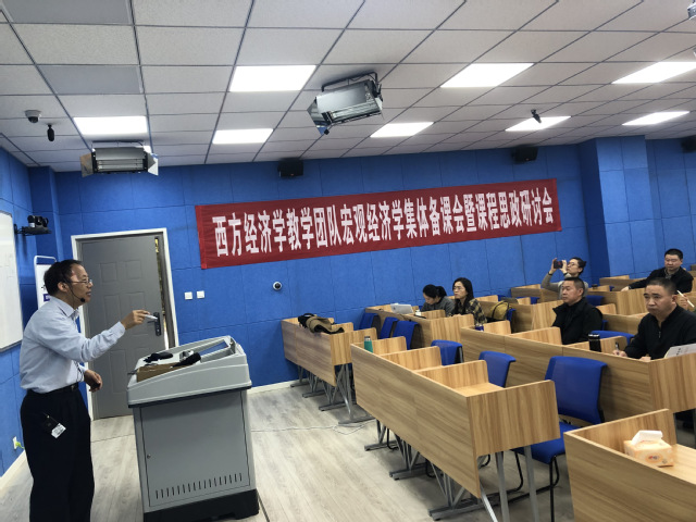 下午的备课会聚焦于西方经济学课程思政建设问题,李政军教授在广泛阅读的基础上,梳理了课程思政的由来,深入挖掘了“课程”和“思政”这两个概念内涵,指出“知识传递、能力培养和价值塑造”是西方经济学课程的目标要求,在此基础上讨论了课程思政和思政课程的差异和一致性,提出了课程思政建设的三个原则:第一个原则是在思政课程的指导下,挖掘课程思政的元素;第二个原则是“因事而异,因时而进,因势而新”;第三个原则是“不忘本来,融通外来,着眼未来”。最后,李政军教授以他讲授的《经济学基础》课程为例子,向老师们展示了他如何使用上述原则,讲授这门课程的第一讲序言。