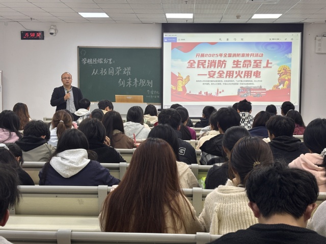 近期以来,学校各校区、各学院也开展了丰富多彩的消防安全宣传活动。宜宾校区青年志愿者服务队开展“蓝焰之光,烛照平安”消防日校园主题活动,以趣味游戏的方式传播消防知识,既强化师生消防安全意识,也提升应急处置能力。应急管理学院联合社区进行消防设施安全排查,对周边社区的消防设施开展系统性检查,切实织密校园及周边安全防护网。材料科学与工程学院、管理学院、理学院、体育学院等开展消防灭火演练实践活动,将理论与实践结合,以实战演练提升防范能力,筑牢消防安全屏障。电气与电子信息学院、法学院(知识产权学院)等开展消防专题讲座,为同学们带来兼具理论性与实用性的消防安全知识普及,进一步强化师生消防安全意识,提升应对火灾突发事件的自救互救能力,为校园安全筑牢 “防火墙”。机械工程学院、经济学院、能源与动力工程学院等开展主题班会,切实增强同学的消防安全意识,普及火灾预防、应急避险及初期火灾处置等基础理论知识,进一步夯实校园安全防护基础。美术与设计学院开展了“11·9”消防宣传作品线上展览,学生通过原创手绘、海报制作等方式,传播消防安全知识,积极弘扬社会正能量。