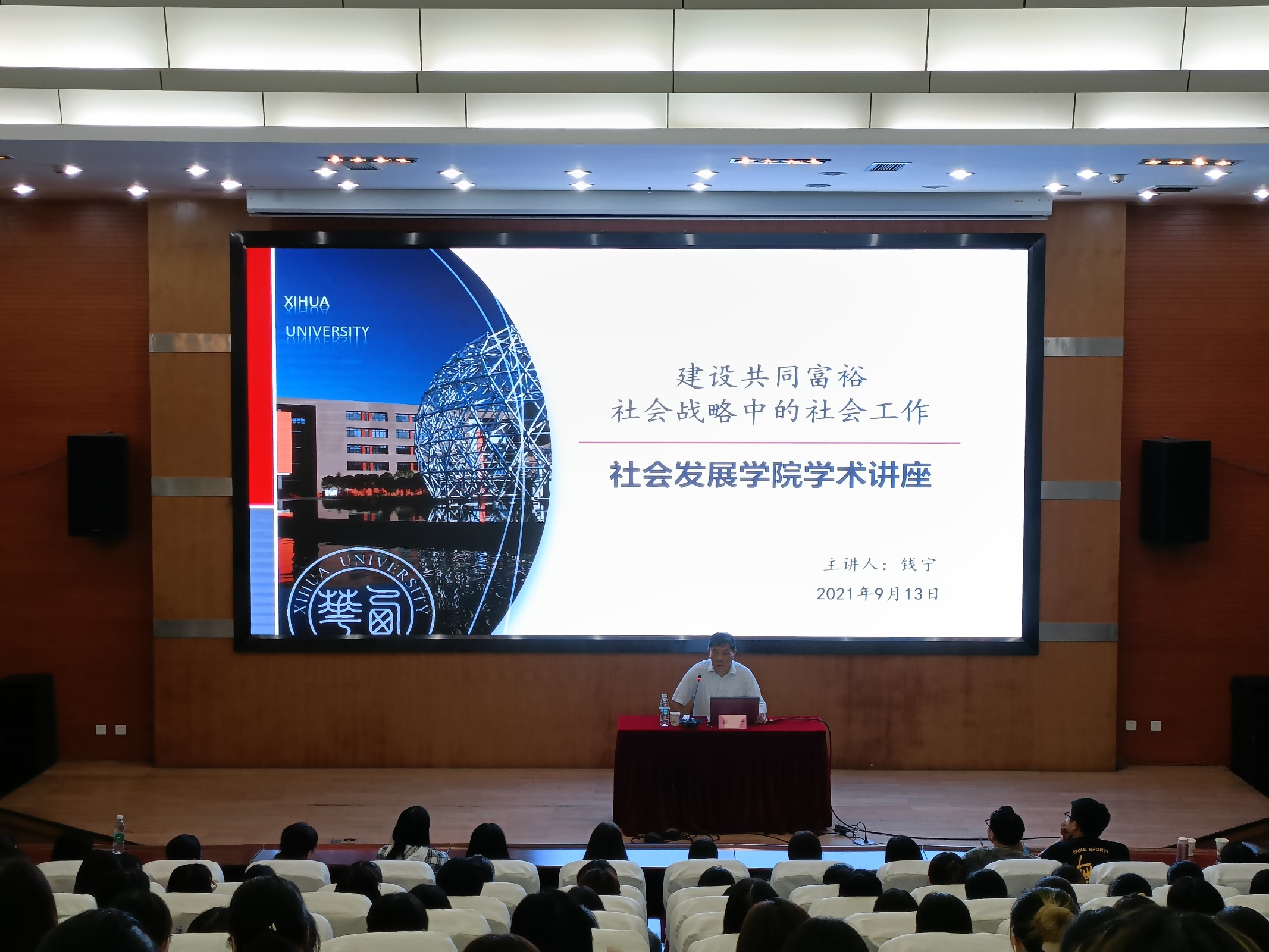 9月13日下午,法学与社会学学院邀请云南大学社会学与社会工作系钱宁教授在图书馆报告二厅举行了题为“建设共同富裕社会战略中的社会工作”的专题报告。学院党委书记张雪征、副院长冯永泰、学院专业教师和2021级研究生、本科生参加了此次报告会。报告会由冯永泰主持。