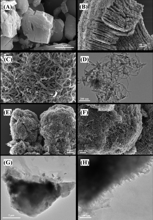 不同材料的SEM/TEM图,展示Ti₃C₂Tₓ等的结构特征及复合后的三维结构