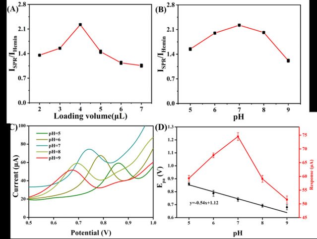 修饰体积、pH条件优化及峰电位与pH的线性关系