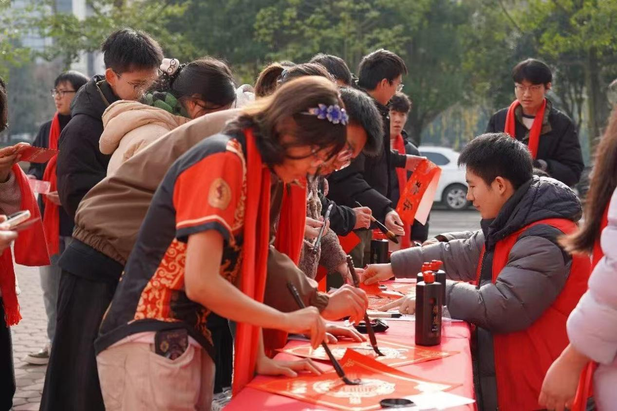 为丰富寒假留校学生在校生活,西华大学在郫都校区为寒假留校学生举办了新春团拜会。该校主要领导、相关职能部门负责人、各学院分管学生工作负责人与900余名留校学子欢聚一堂,以舞狮表演、诗歌朗诵、歌舞表演、民俗体验、集体庆生等形式提前庆祝新春。