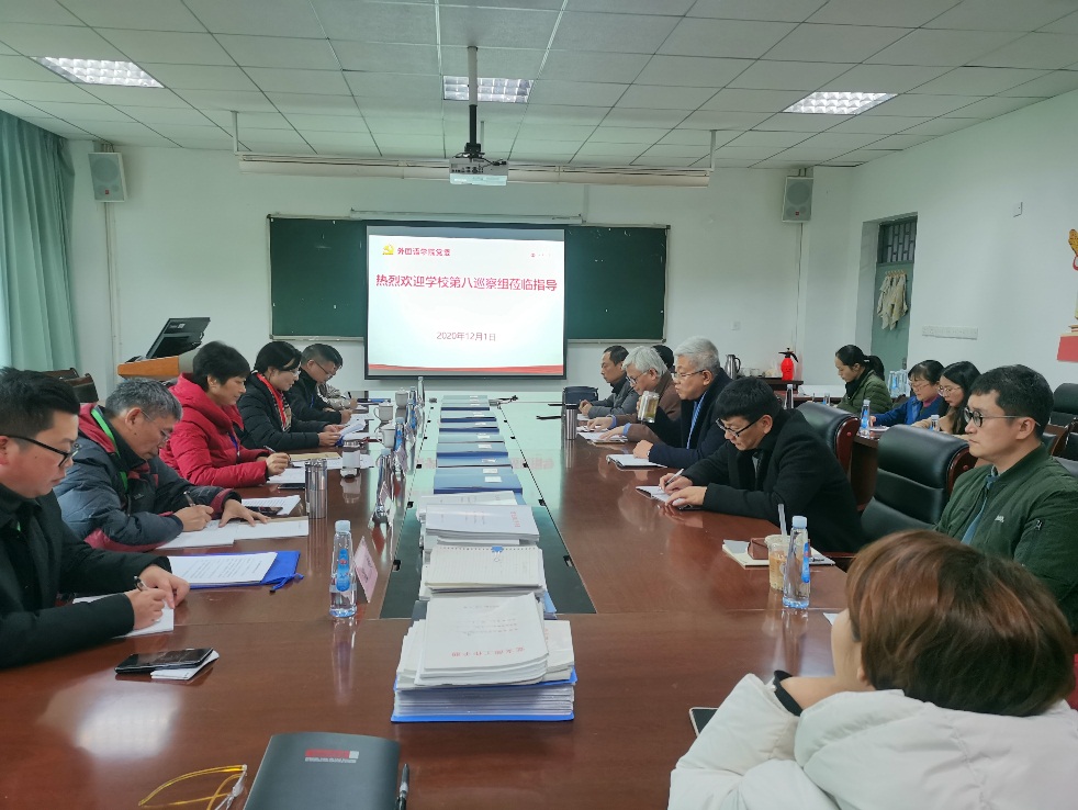 党委第八巡察组全体成员,外国语学院领导班子、“三办”主任、教工党支部书记、教师代表等参加了会议。